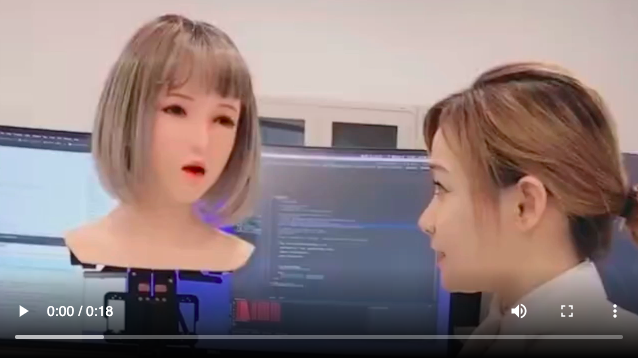 Here you can see the robot “Aiko”. After being communicated to with ‘Hello”, she replies “Hello, I am AIko. I am from E.X. Robot Company”. She looks to have much improved enunciation skills with her mouth formations being very much in time with the speech and her facial expressions are very emotive when she is talking. Her head and neck is turning and moving as she speaks which gives a look of interaction and expressive narration. This gives the end user a real humanoid communication and the reality of the expressions is something that people relate to and like.